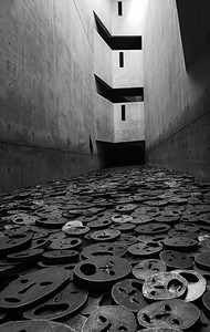 For example, in the Jewish Museum in Berlin, designed by Daniel Liebskind, visitors move between the exhibition spaces on a broken line. The feeling created by walking in the zigzag route is of disorientation or lack of order. The feeling of absence is reinforced by the changing angles that make up the space and the use of exposed concrete. In fact, the only element that allows little orientation in the museum space are the openings that bring natural lighting into the space. At the end of the visit to the museum, an opening to the sky opens between the ruins; the opening in the museum's ceiling lets in a strong daylight that illuminates the statue of the artist Menashe Kadishman, which consists of hundreds of sad faces made of steel. In order to enjoy the sky, visitors to the space must step on the statue as each step produces a jarring sound of friction on the faces of each other.