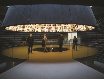Today, on Remembrance Day of the Fallen Soldiers and Victims of Terrorism, thousands of bereaved and grieving families visit Mount Herzl. The memorial hall on the mountain was designed by the Kimmel-Eshkolot Architects Office and in collaboration with Klosh-Chechik Architects. The space of the memorial hall is in fact a kind of "bell of light" dug in the ground to a depth of about eighteen meters. The circular shaft that connects the main hall to the opening that lets in natural light into the space is made up entirely of uniform bricks. On each brick, like a small dedication, is engraved the name of a fallen. The circular shape that infuses light into space and frames a view of the sky seeks to produce, through architectural elements and natural lighting, a heavenly feeling and give a sense that can be grasped in the memory of the fallen and life.